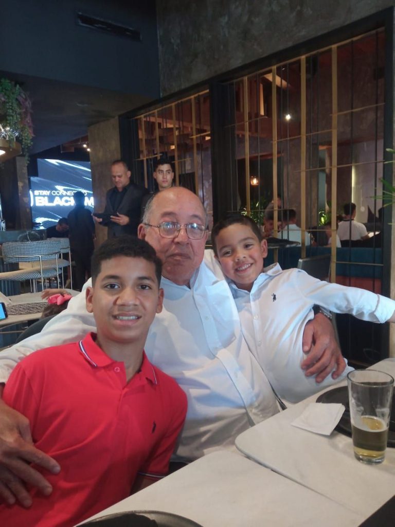 Como abuelo, es lo máximo, maravilloso. Con sus cuatro nietos y un bisnieto, especialmente con mi hijo (Andrés) de seis años, que es su compañero inseparable para los juegos y el cine. Mi hijo lo incluye en todos sus planes, siempre preguntando: “¿No vamos a llevar a mis abuelos?”.