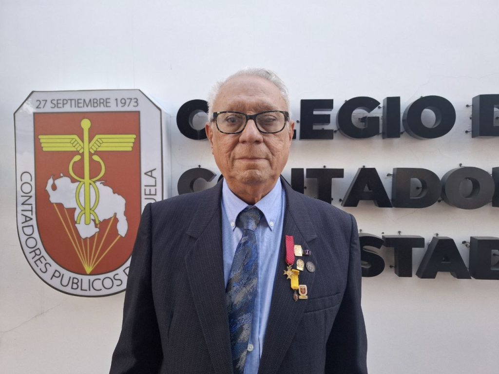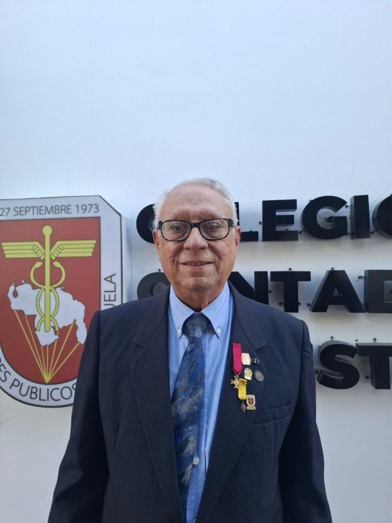 Porto diversas condecoraciones que representan mi trayectoria. Entre ellas, la máxima del gremio de contadores públicos, la Orden Francisco de Miranda en tercera clase, la Orden San Sebastián y la Orden Andrés Bello en su primera clase, esta última solicitada por mi colegio profesional. Adicionalmente, llevo un reconocimiento por mis 20 años de ejercicio docente y 50 años de ejercicio profesional.